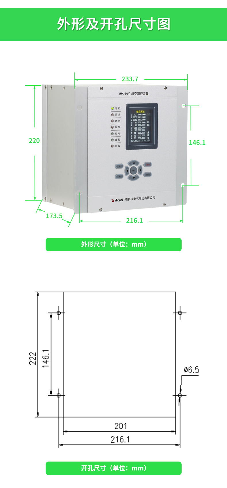 AM6-PWC箱變保護測控裝置 備差動保護及過流保護針對光伏及風能升壓變不同要求研發的集保護,測控,通訊一體化裝置,具備差動保護及過流等相關保護,適用于高低壓側兩分支接線的場景。