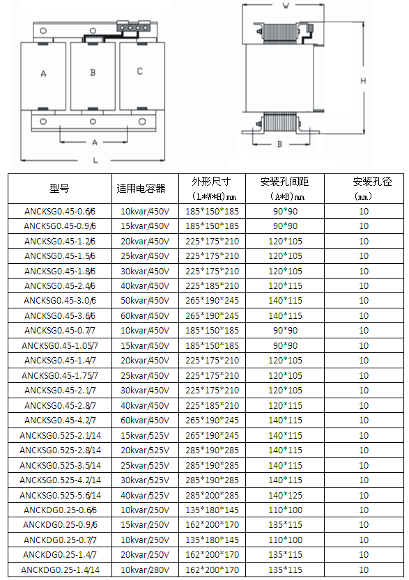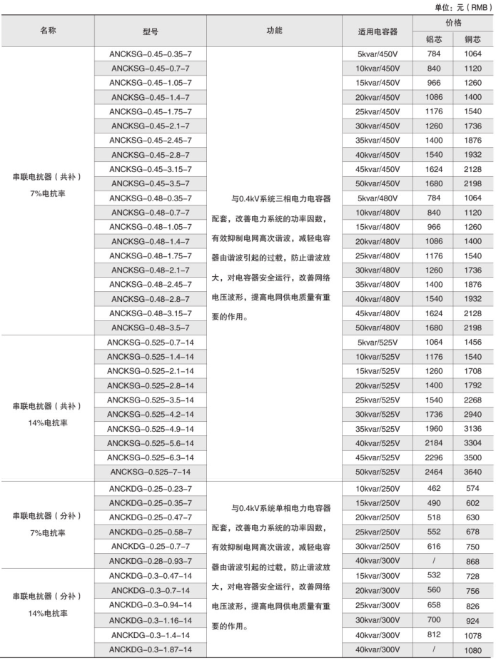 ANCK系列串聯(lián)電抗器與ANBSMJ系列自愈式低壓并聯(lián)電容器配套使用,主要用于提高0.4kV電力系統(tǒng)的功率因數(shù),有效抑制電網(wǎng)的高次諧波,減輕電容器由諧波引起的過(guò)載,防止諧波放大,對(duì)電容器的安全運(yùn)行,改善網(wǎng)絡(luò)電壓波形,提高供電質(zhì)量和電網(wǎng)安全經(jīng)濟(jì)運(yùn)行起良好作用。