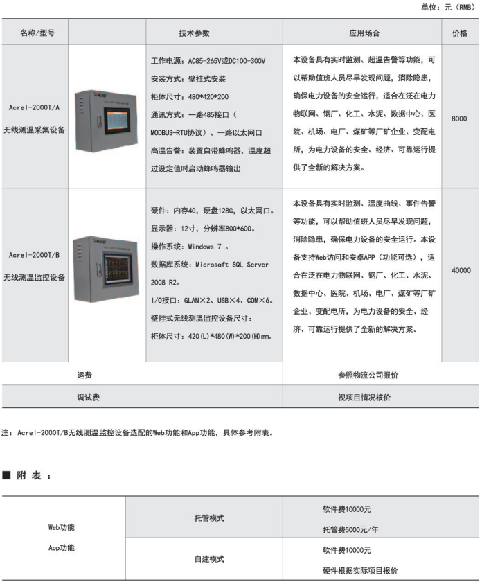技術要求:10面高壓柜內斷路器觸頭6點、母排3點無線測溫訂貨范例: