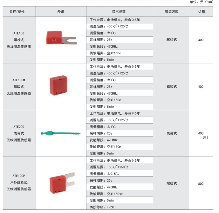ATE100P戶外螺栓固定無線測溫傳感器