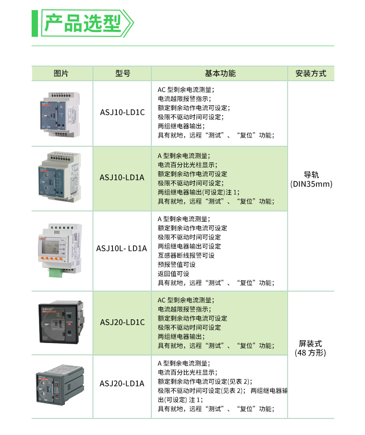 剩余電流動作繼電器ASJ10L-LD1A:1路A型剩余電流測量,電流越限報警指示