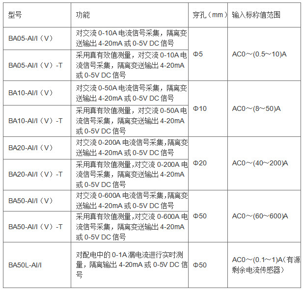 BA交流電流傳感器