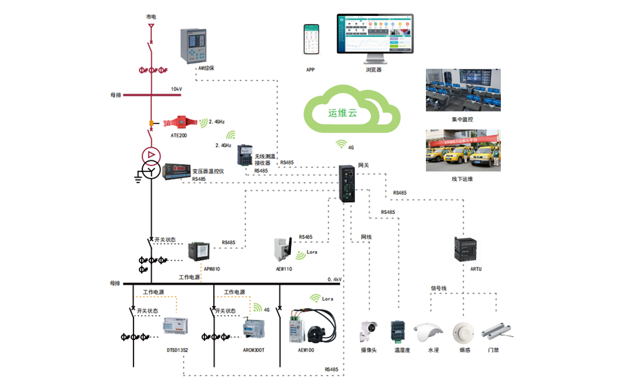 實時監測變電所的運行環境,包括環境溫濕度、水浸、門磁、煙感、線纜溫度等,并可實現視頻監視和錄像回放;