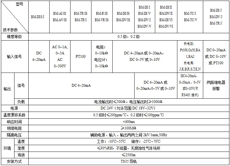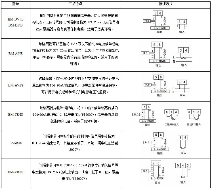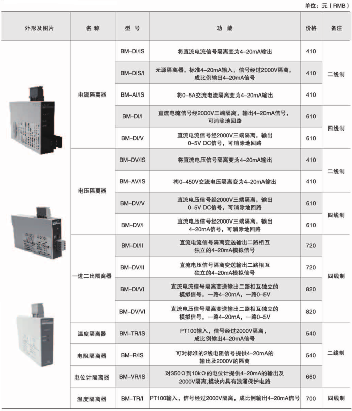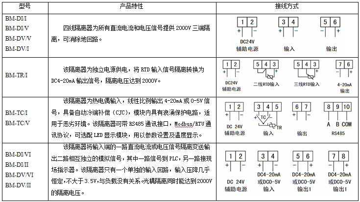 BM系列模擬信號隔離器可以對電流、電壓等電量參數或溫度、電阻等非電量參數進行高速測量,經隔離轉換成標準的模擬信號輸出。既可直接與指針表、數顯表相接,也可以與自控儀表(如PLC)、各種A/D轉換器以及計算機系統配接。