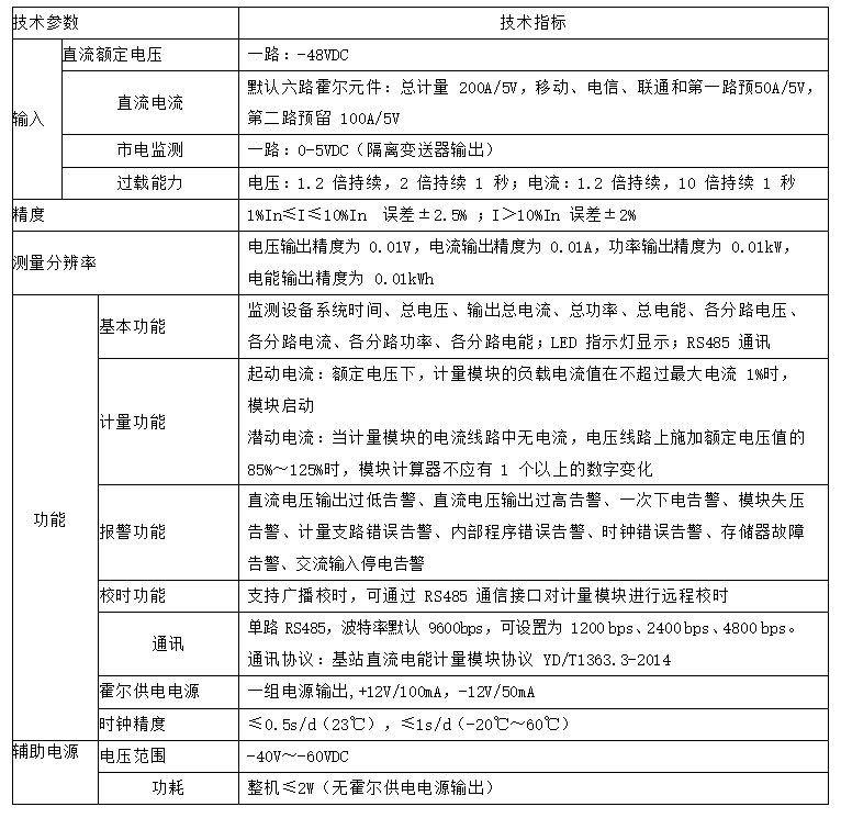 儀表接入DC48V,可對六個回路的直流電能進行計量,并可為配置的霍爾傳感器提供工作電流。同時可通過上位機軟件實現零漂校準,利用485通訊完成遙測、遙信、遙調。具有實時電量計量、供電質量異常告警、信息存儲及處理、信息交互等功能。