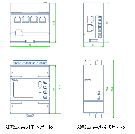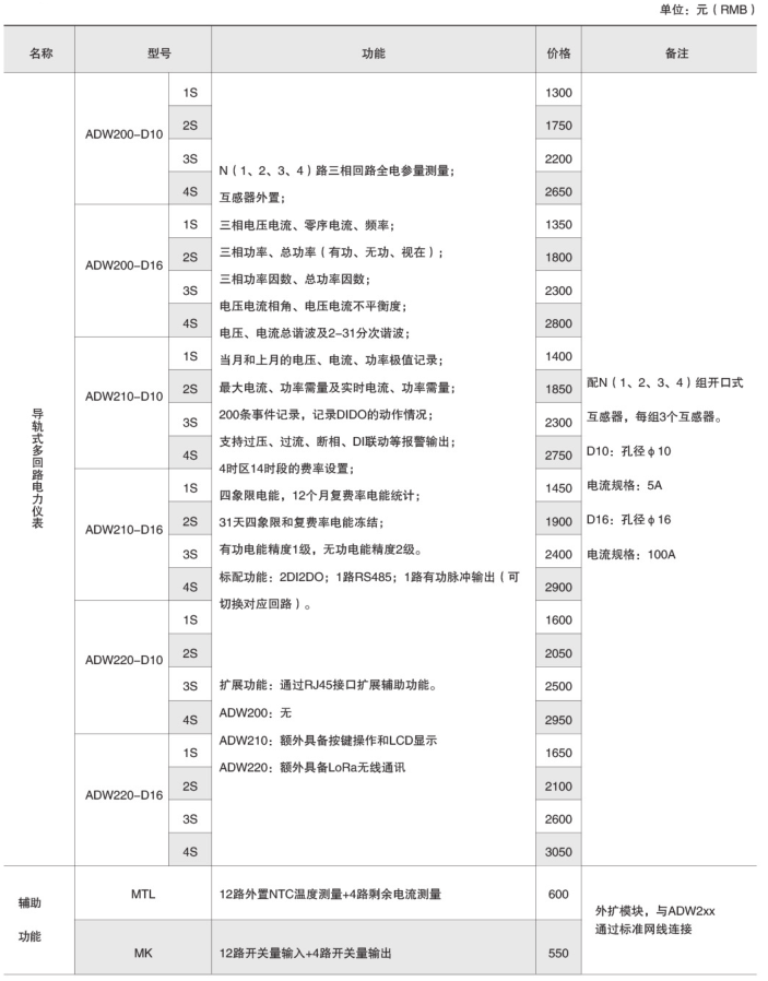 ADW2xx系列導(dǎo)軌式多回路電力儀表方便用戶進(jìn)行用電監(jiān)測(cè)、集抄和管理。可靈活安裝于配電箱內(nèi),實(shí)現(xiàn)對(duì)不同區(qū)域和不同負(fù)荷的分項(xiàng)電能計(jì)量,統(tǒng)計(jì)和分析。訂貨范例: