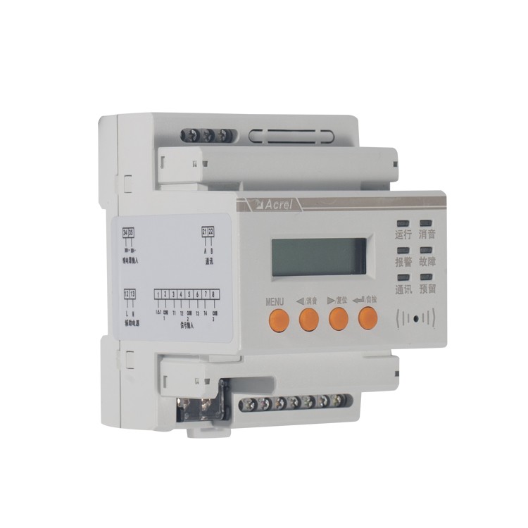 監(jiān)測(cè)四路剩余電流和一路溫度,四路繼電器輸出,聲光報(bào)警,485通訊,事件記錄,LCD顯示,1路RS485/MODBUS通訊,導(dǎo)軌式安裝
