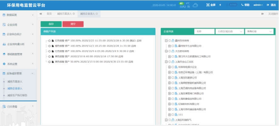 2.6.2減排企業(yè)錄入:按企業(yè)/行業(yè)/區(qū)域批量配置企業(yè)需要執(zhí)行的減排方案。