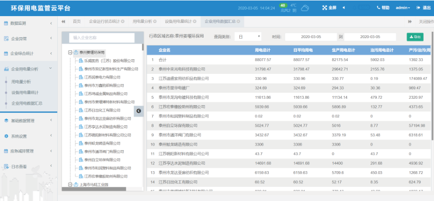 2.5.3企業(yè)用電數(shù)據(jù)分析:按年/月/日統(tǒng)計企業(yè)以及行政區(qū)域的總用電情況,可導(dǎo)出成報表。