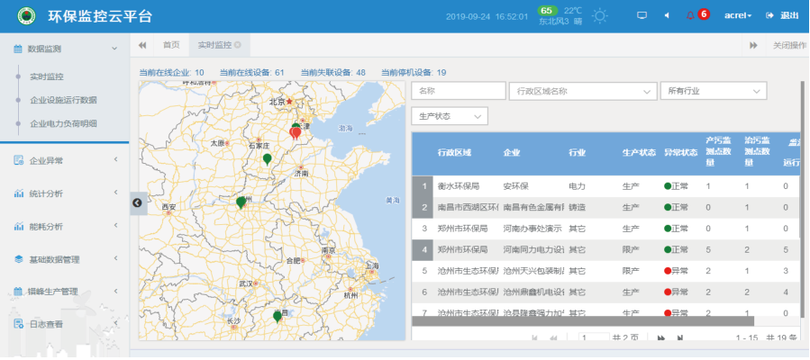 通過關(guān)聯(lián)分析、超限分析、啟停時間分析,及時發(fā)現(xiàn)環(huán)保治理設(shè)備未開啟、異常關(guān)閉及減速、空轉(zhuǎn)、降頻等異常情況,同時通過數(shù)據(jù)分析還可以實時監(jiān)控限產(chǎn)和停產(chǎn)整治企業(yè)運行狀態(tài)