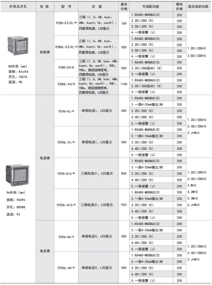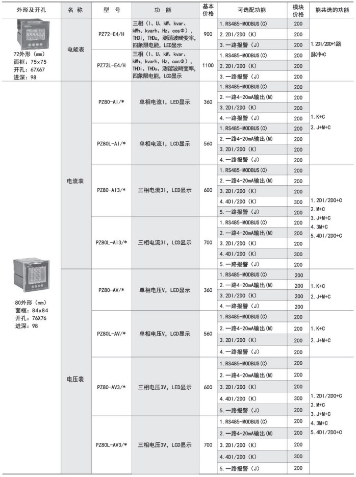 該系列儀表采用交流采樣技術,能分別測量電網中的電流、電壓、功率、功率因數和電能等參數。可帶RS485通訊接口、模擬量數據轉換、開關量輸入/輸出等功能,實現電力參數、電氣元件工作狀態的遠程傳輸,便于后臺監控系統集中檢測。