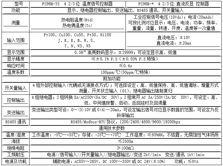 該系列儀表可測量直流電流、直流電壓、各種類型熱電偶、熱電阻、電阻傳感器,帶DC24V電源輸出可給外部兩線式變壓器直接供電。儀表帶有多種可選功能:RS485接口、模擬量輸出、開關量輸入、繼電器報警輸出等。