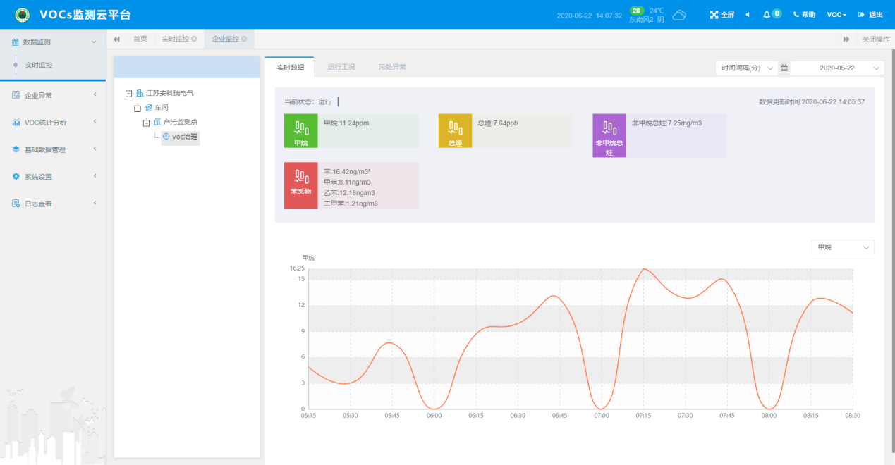 (一)在線監測 對VOCs數據的監測,包括甲烷,非甲烷總烴,苯系物,煙氣溫度、壓力和流速等數值采集監測;