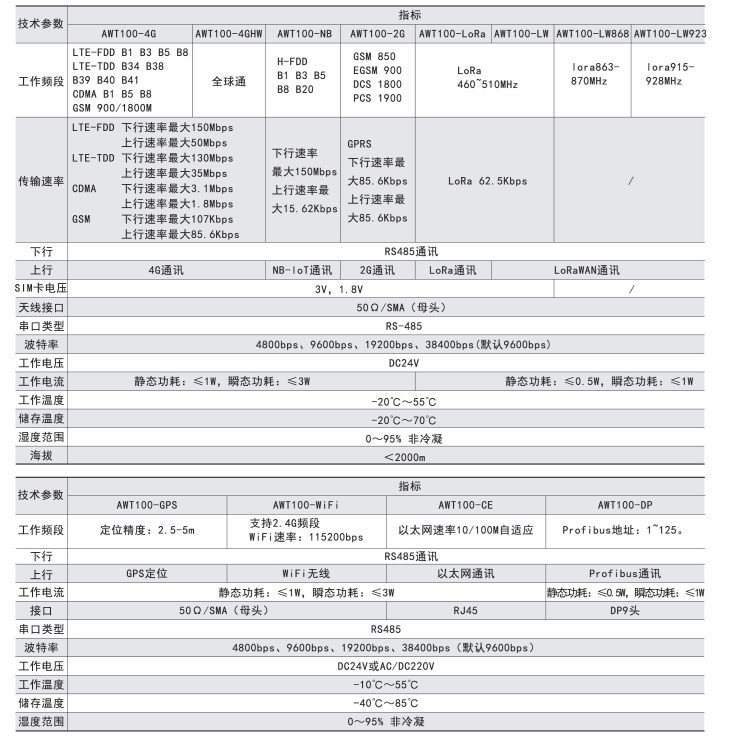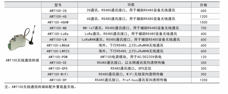 目前,無線技術(shù)憑借著部署容易、建設(shè)成本低、適用環(huán)境廣泛等優(yōu)勢,數(shù)據(jù)多元化逐漸成為未來工業(yè)互聯(lián)網(wǎng)中網(wǎng)絡(luò)發(fā)展及應(yīng)用的重要方向。AWT100 數(shù)據(jù)轉(zhuǎn)換模塊是安科瑞電氣推出的新型數(shù)據(jù)轉(zhuǎn)換 DTU,通訊數(shù)據(jù)轉(zhuǎn)換包括 2G、4G、NB、LoRa、LoRaWAN,GPS,WiFi,CE,DP 等通訊方式,下行接口提供了標(biāo)準(zhǔn) RS485 數(shù)據(jù)接口,可以方便的連接電力儀表、RTU、PLC、工控機(jī)等設(shè)備,僅需一次性完成初始化配置,就可以完成對(duì) MODBUS 設(shè)備的數(shù)據(jù)采集;同時(shí) AWT100 系列無線通訊終端采用了功能強(qiáng)大的微處理芯片,配合內(nèi)置看門狗技術(shù),性能可靠穩(wěn)定。