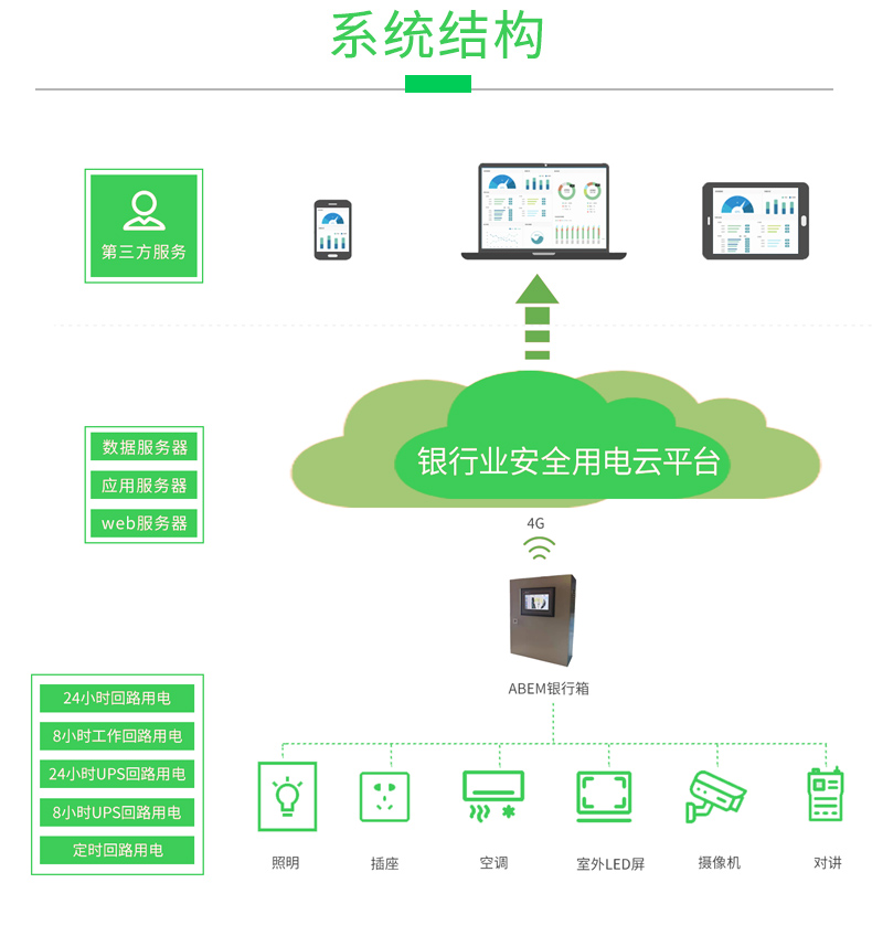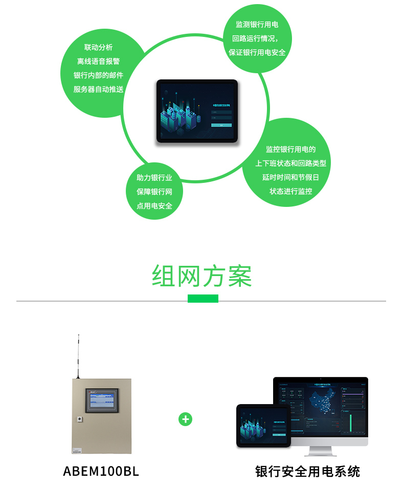 安科瑞Acrelcloud-6500銀行業(yè)安全用電管理云平臺是針對我國應行業(yè)各場景電氣火災事故頻發(fā)而創(chuàng)新的一套電氣火災預警和預防管理系統(tǒng),該系統(tǒng)是基于移動互聯(lián)網(wǎng)、云計算技術、通過物聯(lián)網(wǎng)傳感終端,將銀行業(yè)營業(yè)廳、ATM室等 各種人員密集場所的剩余電流、過壓、過載、過流、過溫、欠壓、打火、缺相、設備不在線等情況下的電氣安全數(shù)據(jù),及時傳輸至銀行業(yè)安全用電管理云服務器,為用戶提供不間斷的數(shù)據(jù)跟蹤、統(tǒng)計分析和安全監(jiān)管,將平臺發(fā)現(xiàn)各種安全 隱患信息及時告警信號,并推送給企業(yè)有關人員,以便其及早檢查和消除隱患,真正做到防患于未然。