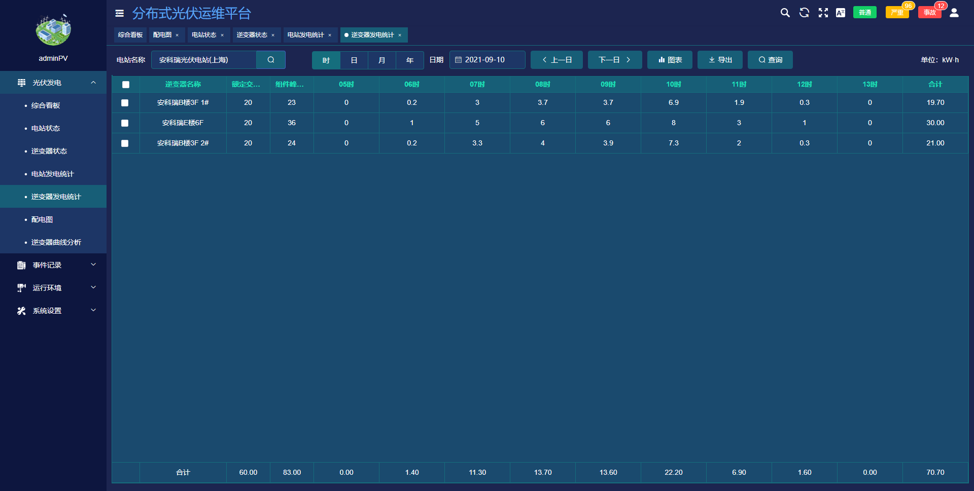 用戶選中電站,點擊圖表,即可查看曲線圖和柱狀圖。