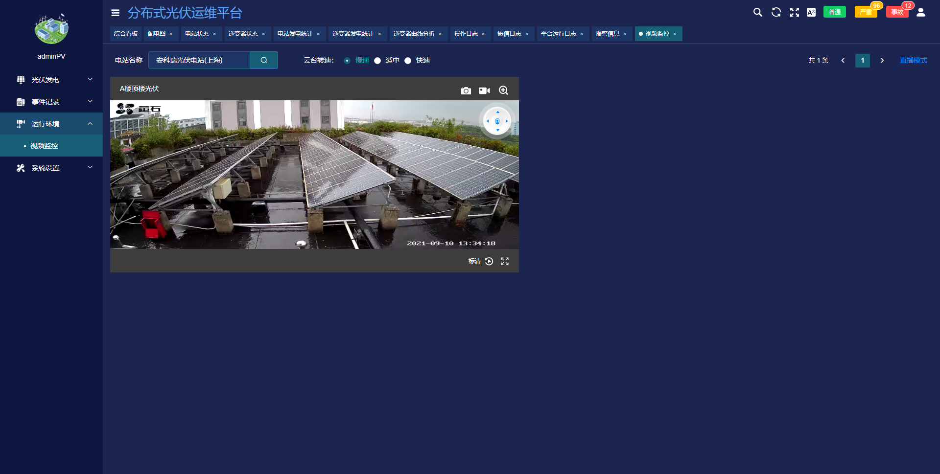 攝像頭實時監測現場環境,并且接入輻照度、溫濕度、風速等環境參數。