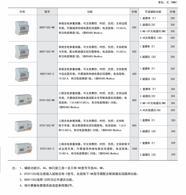 單相全電量測量;內置磁保持繼電器實現通斷;電流10(60)A;NB-IOT無線通訊