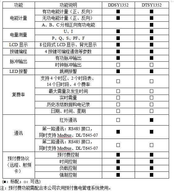 DTSY1352三相預(yù)付費(fèi)灌溉公用電能表用于計(jì)量額定頻率50Hz的單、三相交流有功電能,具有預(yù)付費(fèi)控制、負(fù)載控制、時(shí)間控制、一卡多表、一表多卡及RS485通信等功能,性能指標(biāo)符合GB/T17215.321-2008標(biāo)準(zhǔn)。是改革傳統(tǒng)用電體制,提高用電管理水平的理想計(jì)表。產(chǎn)品符合企業(yè)標(biāo)準(zhǔn)Q31/0114000129C035-2017《導(dǎo)軌式安裝電能表企業(yè)標(biāo)準(zhǔn)》的要求。