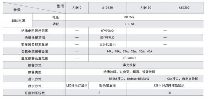報警與顯示儀可以對系統的絕緣電阻報警值、負荷電流報警值和變壓器溫度報警值進行遠程設置;
