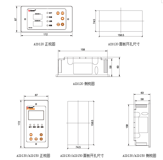 醫用報警與顯示儀AID150:采用LCD液晶顯示,RS485總線,可集中監控多16套AIM-M100醫療智能絕緣監測儀的數據,可遠程聲光報警。AID150還可監控多套AIM-R100剩余電流監測儀的數據。